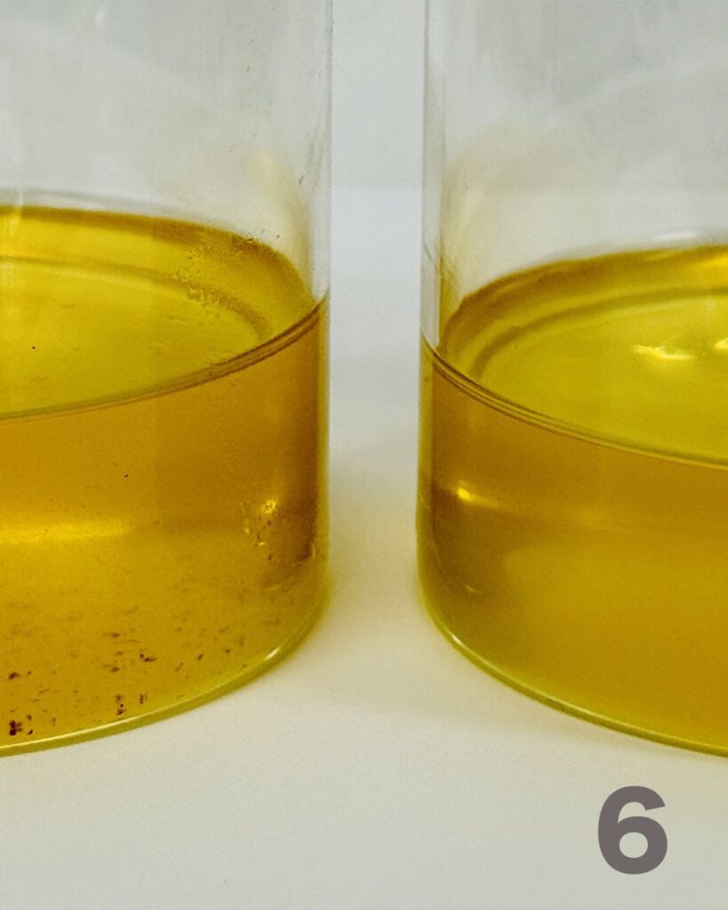 ROCACOSを使用した後の油は、油脂の酸化の原因と考えられる粒子の細かい揚げカスまで取り除きます。(画像5)
